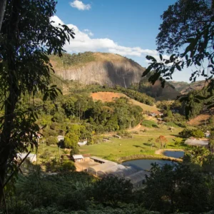 In het hart van de regio Espírito Santo ligt de gemeente Montanhas waar je de koffie van Rota do Lagarto aantreft. De naam Lagarto komt van een 1.822 meter hoge rotsformatie genaamd Pedra Azul. Eraan vastgehecht is een kleinere rots genaamd de Lagarto. Over deze rots gaan vele legendes rond maar de meest interessante is wel dat de rots een bewaker is van het Capixaba gebergte. Met rondom vliegende zwaluwen wordt de regio geobserveerd en de aandachtige blik legt de essentie van de omgeving vast. De smalle weg van 7 kilometer die onder de Rota do Lagarto ligt wordt omgeven met prachtige bossen en nodigt je uit om de rijke natuur en geschiedenis te ontdekken. De Brazil Montanhas bonen worden na de oogst naar het washing station gebracht waar ze eerst gesorteerd worden om ze vervolgens als Pulped Natural koffie te verwerken.